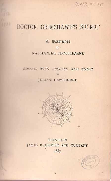 Nathaniel Hawthorne wrote Doctor Grimshawes Secret in 1861, but he never considered the work finished and did not publish it before his death. It was published posthumously in 1883, by Hawthornes son, Julian. Doctor Grimshawes Secret, according to literature historians, contains more autobiographical material than any of Hawthorne’s other writings. One of the principal topics is Hawthornes unresolved feelings about his childhood guardian, whose character is represented by Dr. Grimshawe, a spider-cultivating eccentric. The central motif (i.e., the “secret”) of the book is an all-encompassing spider web.