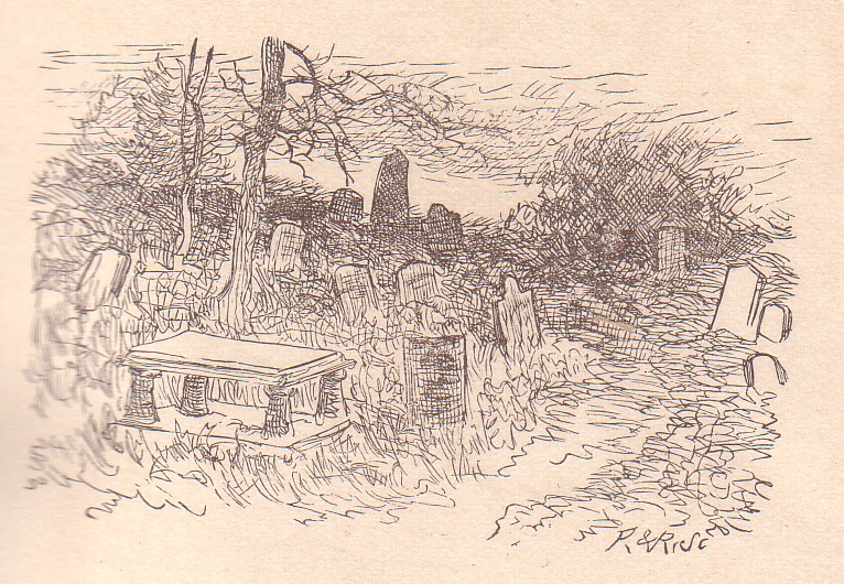 Drawing of Graveyard from 1890 Edition of Dr. Grimshawe’s Secret