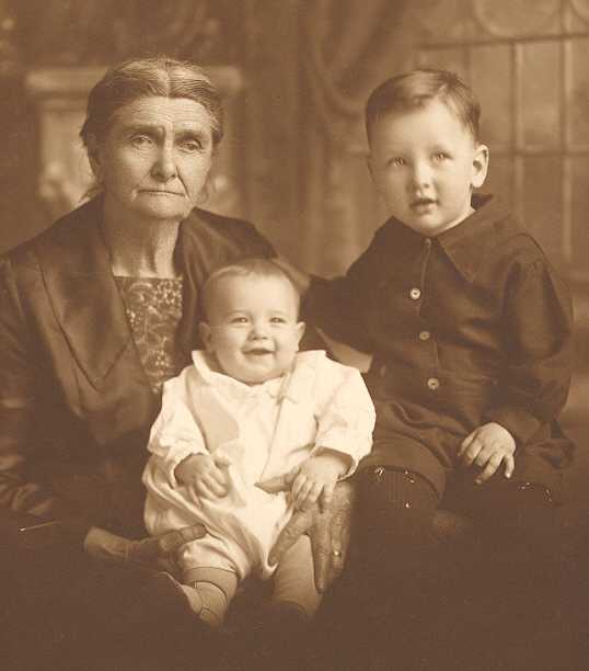 Aris (Ladd) Grimshaw with Her Grandchildren, Claude Walter and George Grimshaw (Sons of Walter and Freda Grimshaw). (Photo courtesy of Al Hodgin. Date of photo is unknown.)