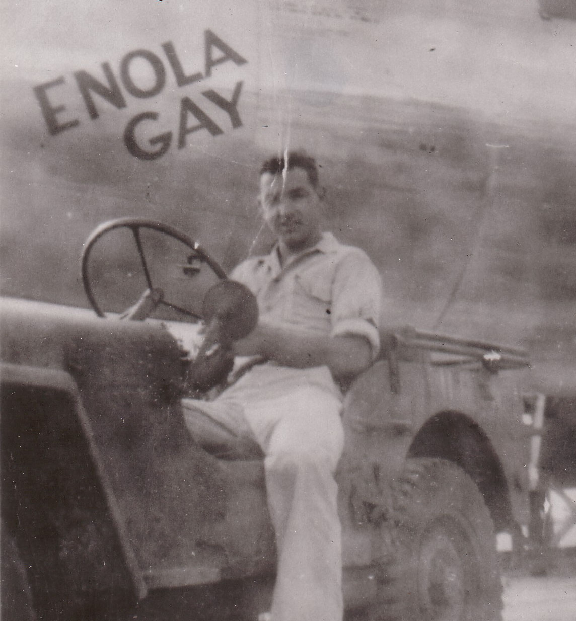 Stan Bice with “Enola Gay”, which dropped the atomic bomb on Hiroshima in 1945