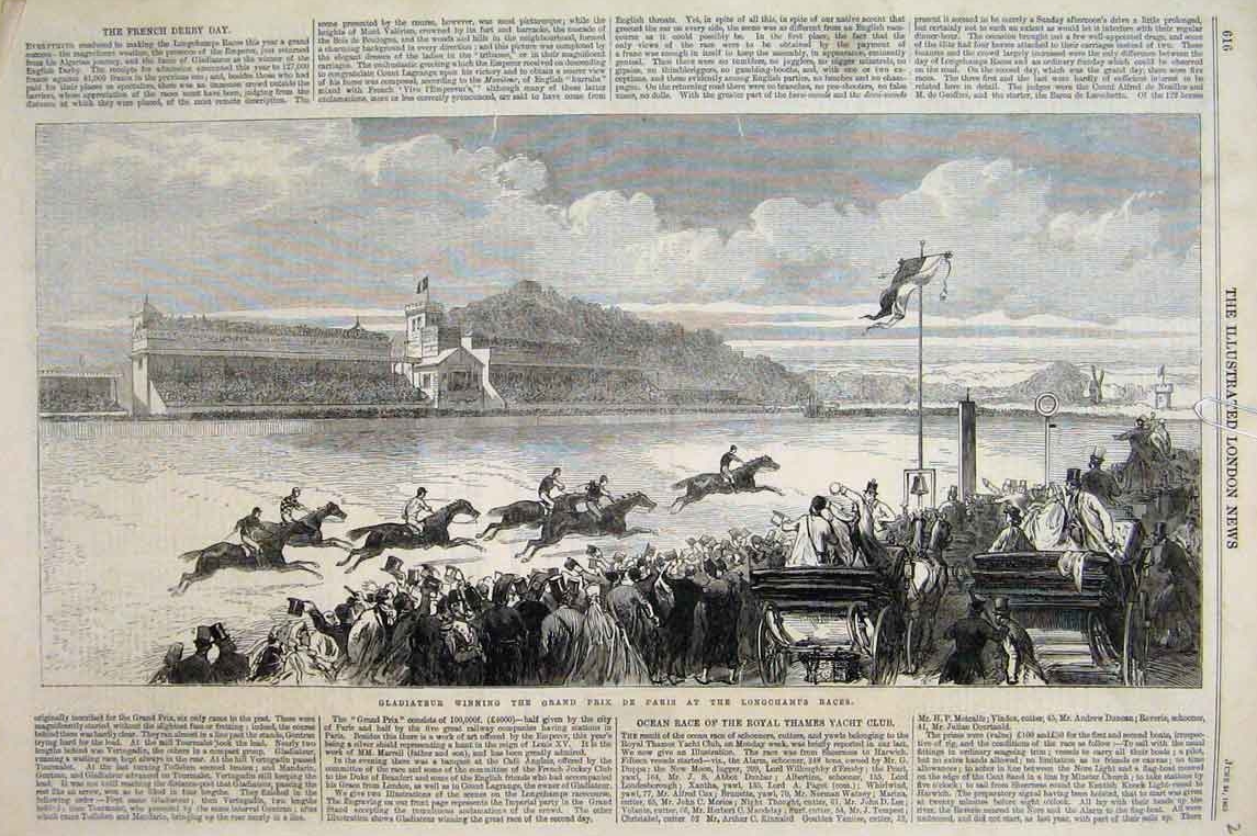 The Illustrated London News published the article below, apparently in June 1865, on Gladiateur winning the Grand Prix.