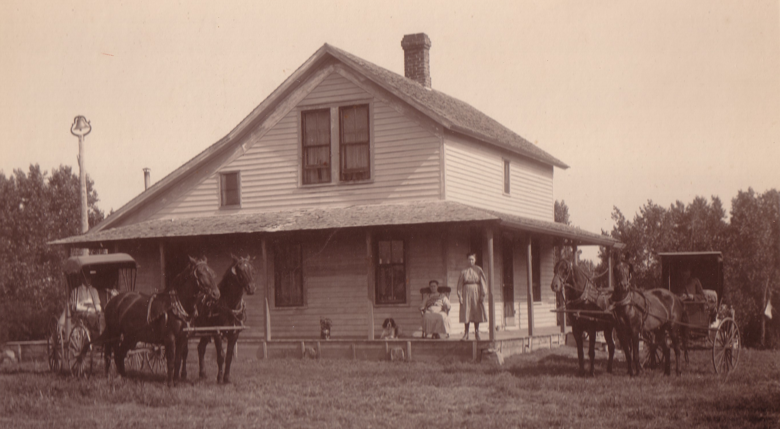Upper photo clearly earlier. One of the two women is likely to be Dora Cummings. Note the “dinner bell” on the left side of the house.