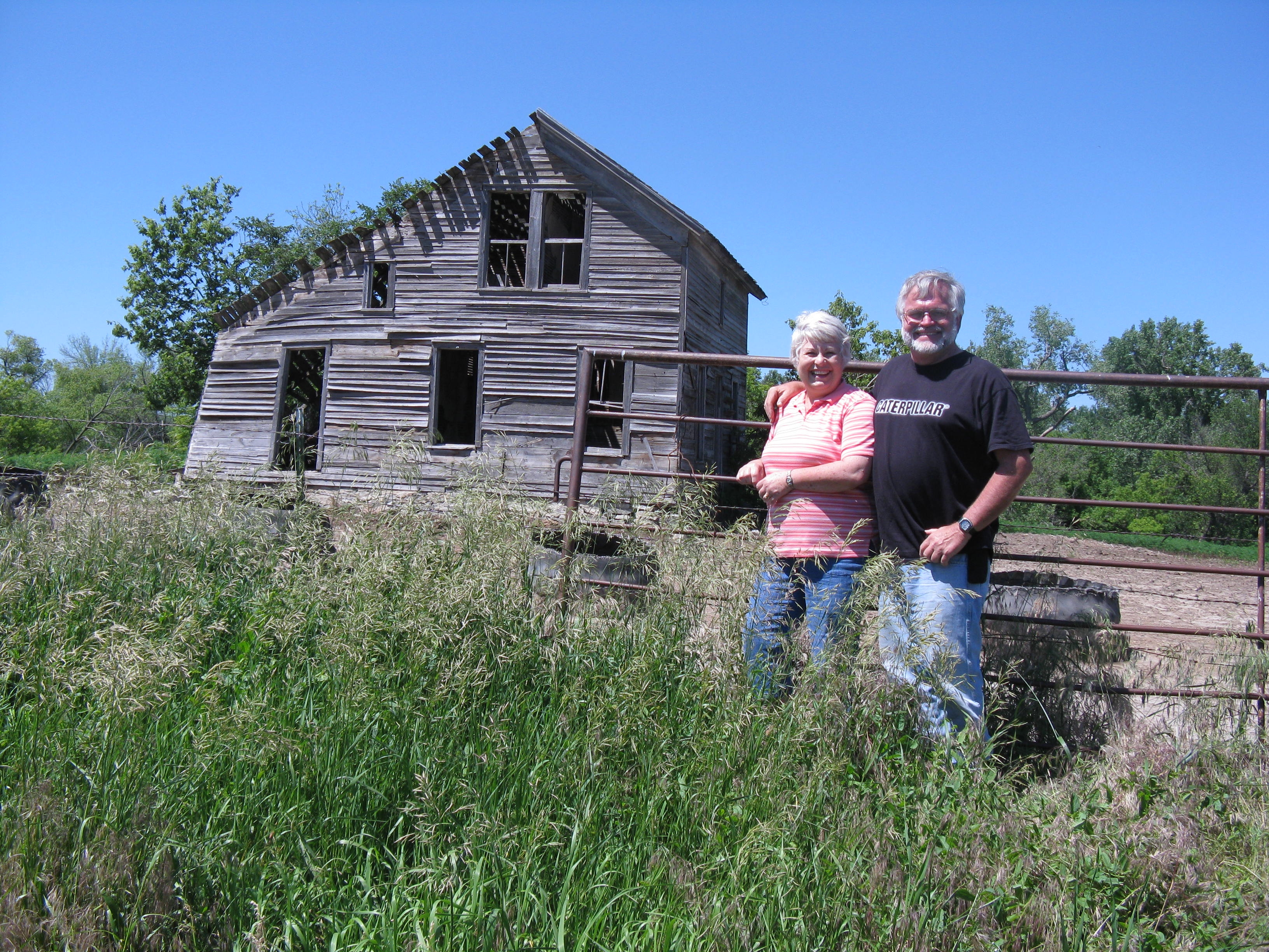 The old house was still standing in 2010. Photo includes Linda and Raymond Roggow. Taken by website author.