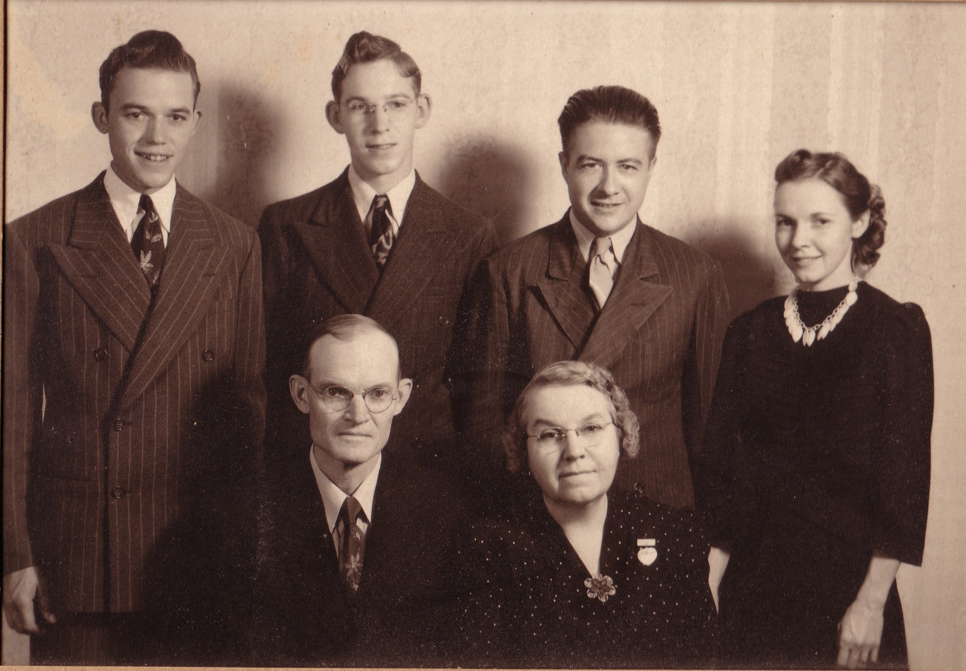 Back row, left to right, are Charles and Albert Anderson, Mr. Saes, husband of Marilyn, and Marilyn Anderson. Arthur and Grace Anderson are seated in the front. Photo from Charles Anderson collection.