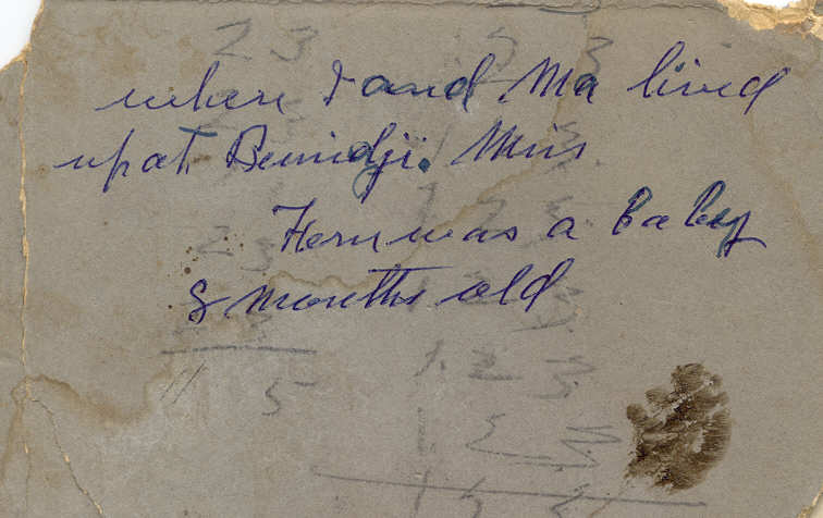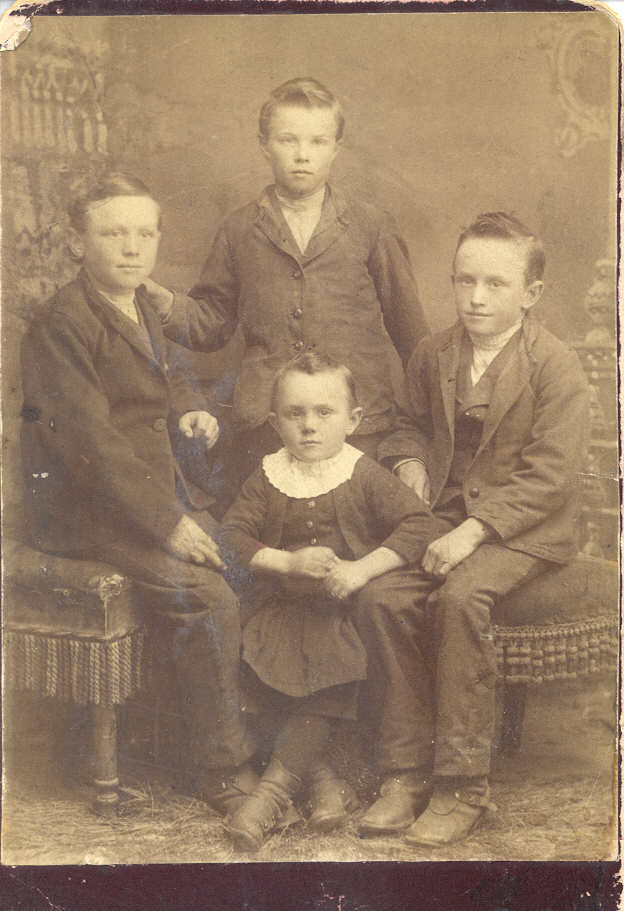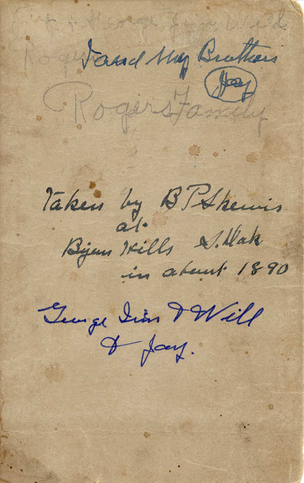 In ink: “I and my brothers – Jay – Taken by BP Skewis – at – Bijou Hills S Dak – in about 1890 – George Jim & Will – & Jay”