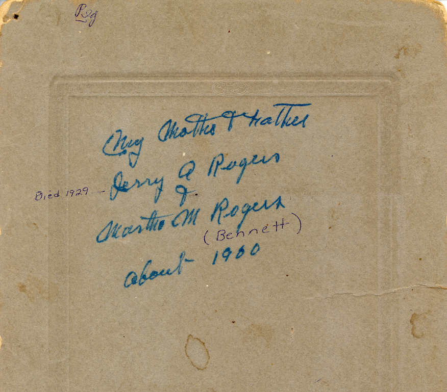 “My mother and father – Jerry A Rogers (died 1929) & Martha M Rogers (Bennett) – about 1900”