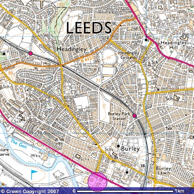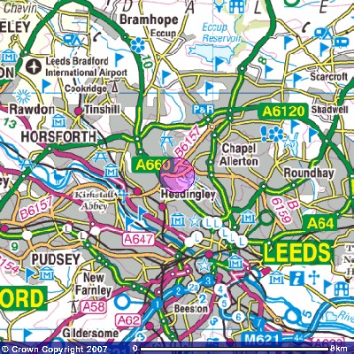 The location of Headingly Cum Burley, where Percy Grimshaw was living at the time of the 1881 British Census, is shown in the maps below at three scales. It is in the northwest part of Leeds, not far from Rawdon, the point of origin of the Edward and Dorothy Grimshaw family line.