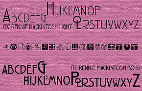 The ITC Rennie Mackintosh font family includes two weights, bold and light. The bold font design is very close in weight and color to Mackintoshs original hand lettering, while the lighter weight was designed to be suitable for use in smaller point sizes. Like his architecture, his hand lettering was revolutionary and designed to communicate not only his written words, but to fit perfectly into the precise nature of his architectural plans and proposals.
