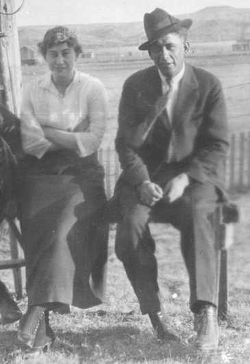 Richard and Anna (Grassman) Sehnert in front of their cafe in Presho. Photo from Freda Bice album.