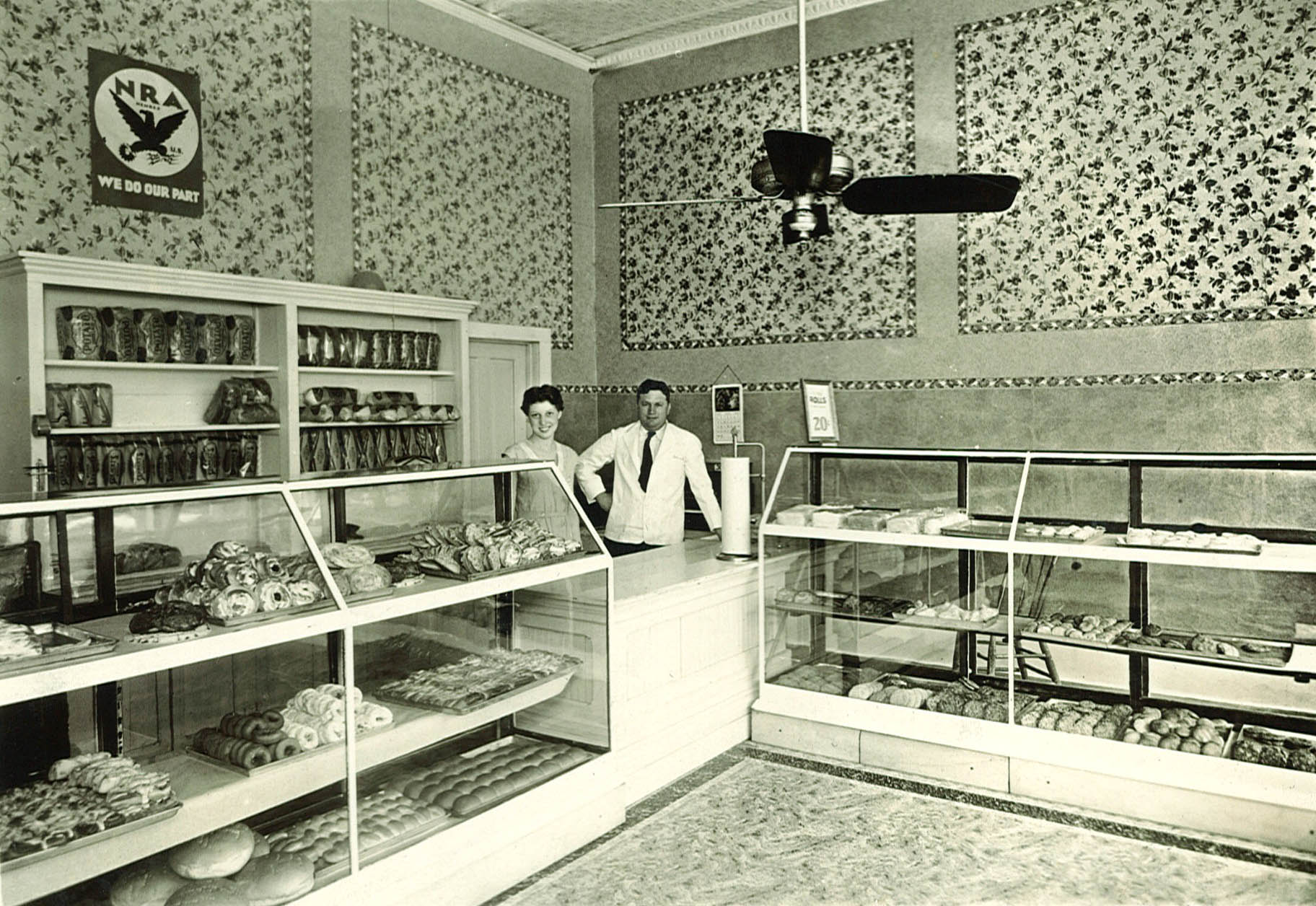 For many years, in conjunction with the bakery, Sehnerts served meals ranging in price from 25c to 50c. The cafe was discontinued in 1924 at the time of Mr. Sehnert’s death. Mrs. Sehnert continued the bakery with the help of sons and Louise. In 1932, Mrs. Sehnert passed away. Rudy and wife Christine operated the bakery for a time and in 1933 Carl and Louise bought the establishment from the Sehnert estate and have operated since that time.