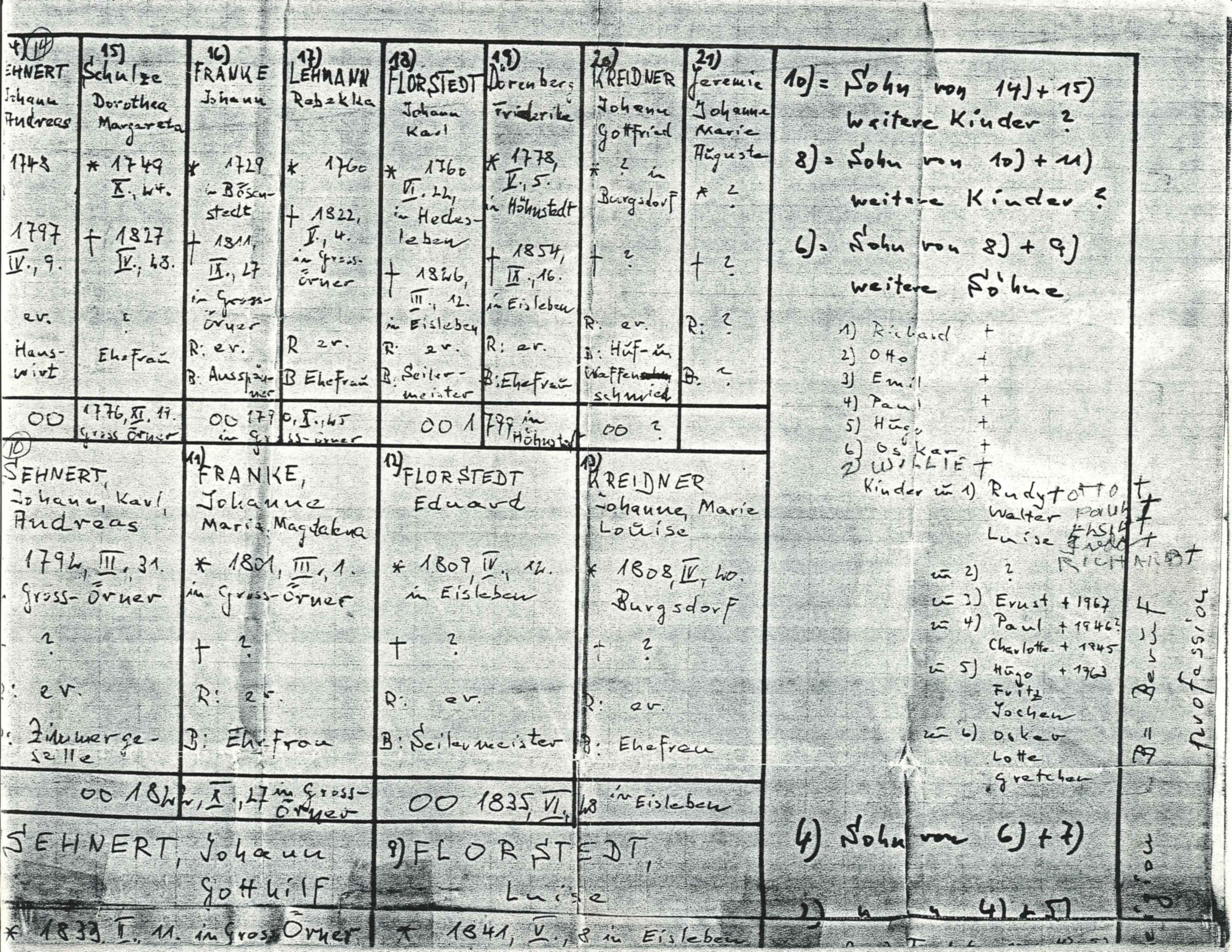 |–1 Johann Karl Andreas Sehnert (31 Mar 1792 – ) & Johanne Maria Magdalena Franke (1 Mar 1801 – )
