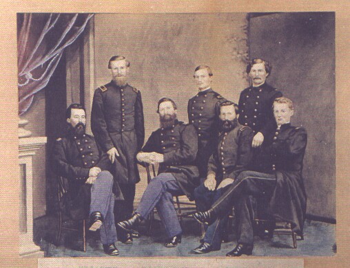 Seated, left to right: Major Moses B. Gist; Commander – Col. Arthur H. Grimshaw; Quarter Master – Lt. John J. Toner; Surgeon – Lt. Linton Smith