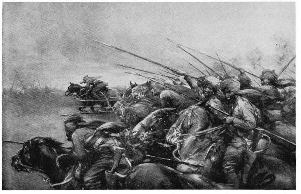 “The Bengal Lancers charging the German Cavalry near Ypres, October 1914.