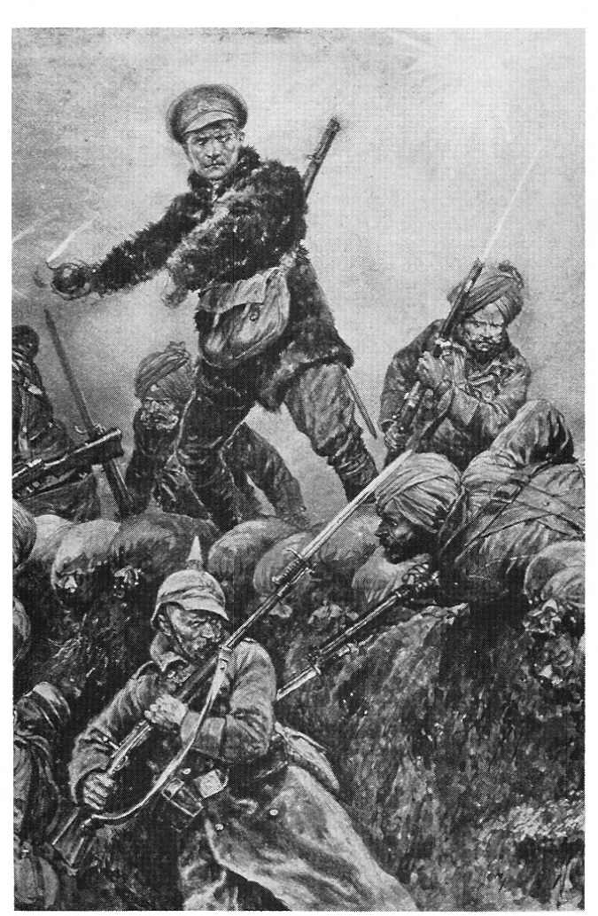 “Indian troops charging the German trenches at Neuve Chapelle, March 1915.1“