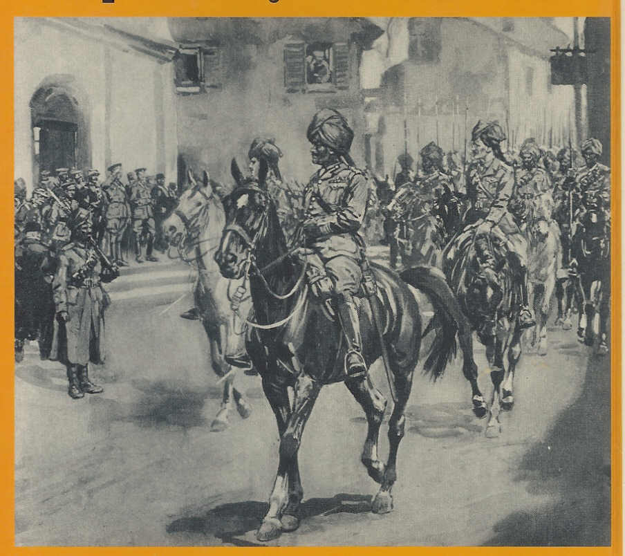 “Sir Pertab Singh leading the Jodhpur Lancers through a French village.1“
