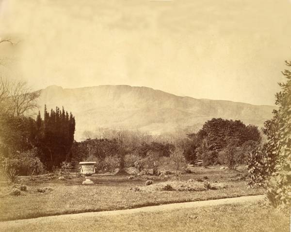 The garden of the Whitehouse with Cave Hill (1182 ft above seal level) and its black basalt cliffs in the background.
