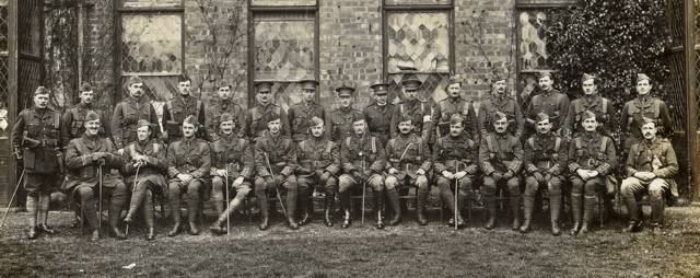 The officers of the 1st Battalion of the Royal Dublin Fusiliers (March 1915)/ Major Cecil Thomas Wrigley Grimshaw DSO – sitting 6th from right. This photo was probably taken in Torquay prior to embarkation to Gallipoli in 1915.