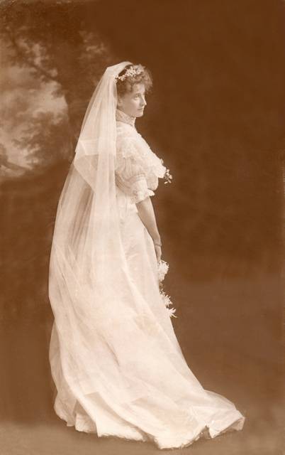 Agnes Violet Grimshaw, wife of Cecil Thomas Wrigley Grimshaw (1875-1915) and mother of Thomas, George and David, on her wedding day in 1906.