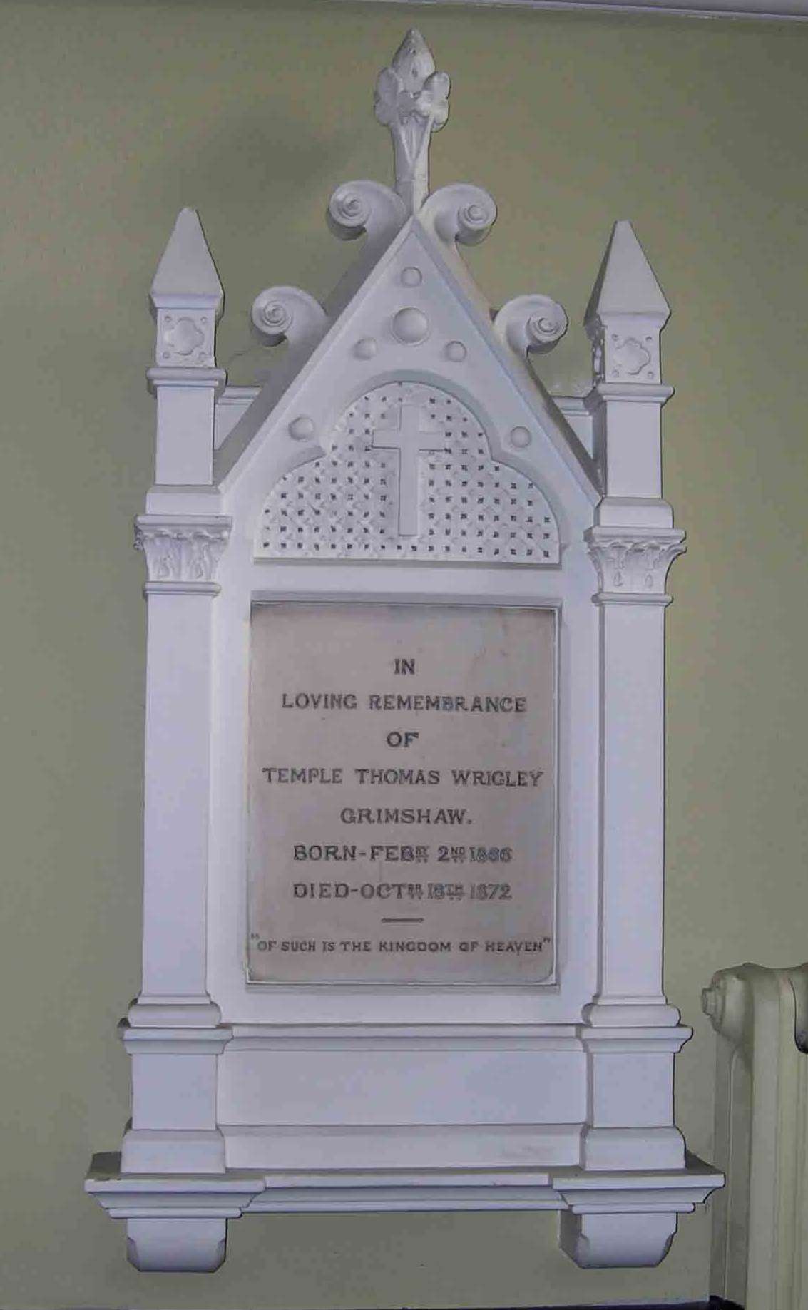 TO THE DEAR MEMORY OF TEMPLE THOMAS WRIGLEY GRIMSHAW AGED 6 YEARS 8 MONTHS