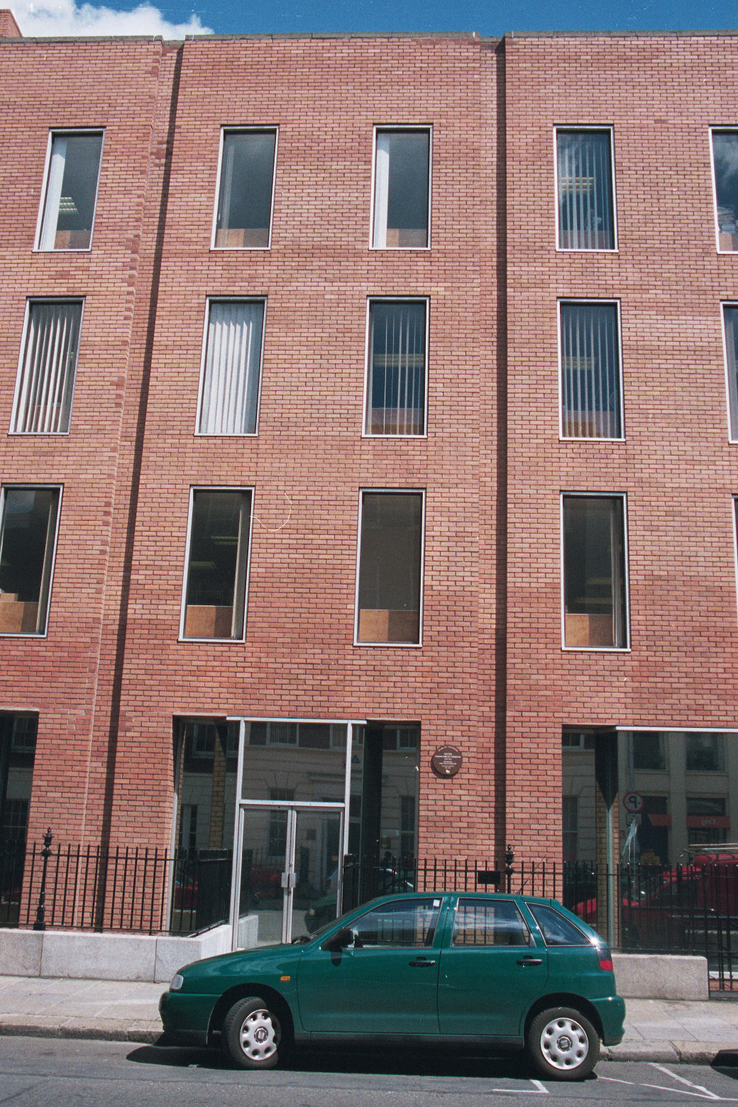 Photos of 15 Molesworth Street, Dublin, showing commemorative plaque for Thomas Wrigley Grimshaw.