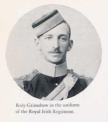 One of their children, Roly, kept a detailed diary of his World War I experiences with the Indian Cavalry on the Western front in 1914-15. The diary was subsequently published2 with the assistance of his daughter, Kathleen. Captain Roly Grimshaw, and his diary, are the subject of a companion webpage. A photo of Roly Grimshaw is shown below.