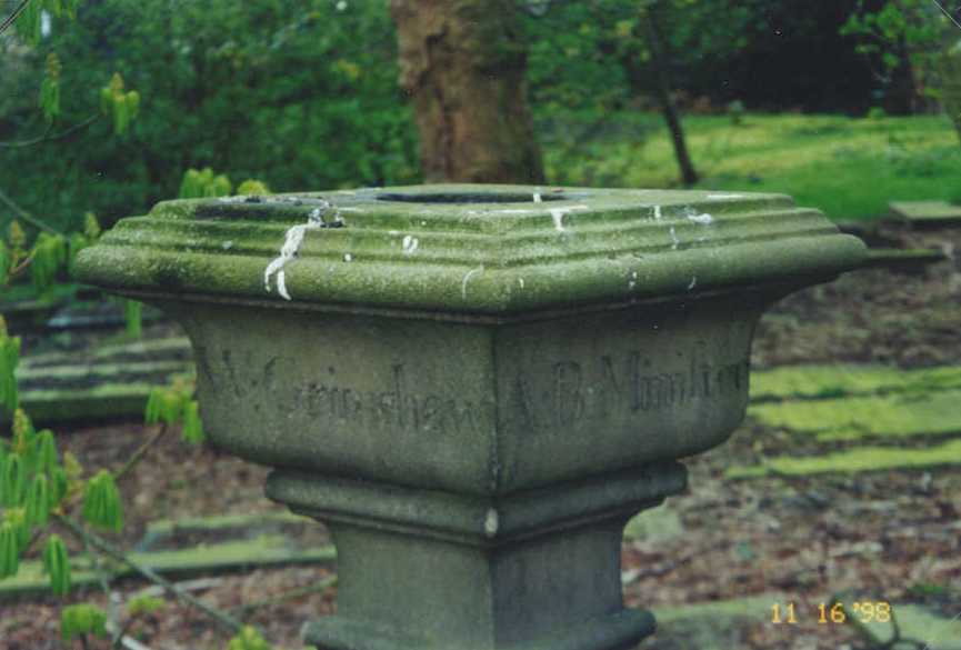 The second photo is the stone fount in the adjacent cemetery with William Grimshaws name.